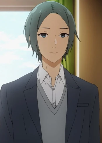Mizouchi has light-blue hair that has bangs hanging on either side, cyan-blue eyes and he usually has a frown or displeased look on his face, mostly due to the fact that he's usually shown interacting with Izumi Miyamura.